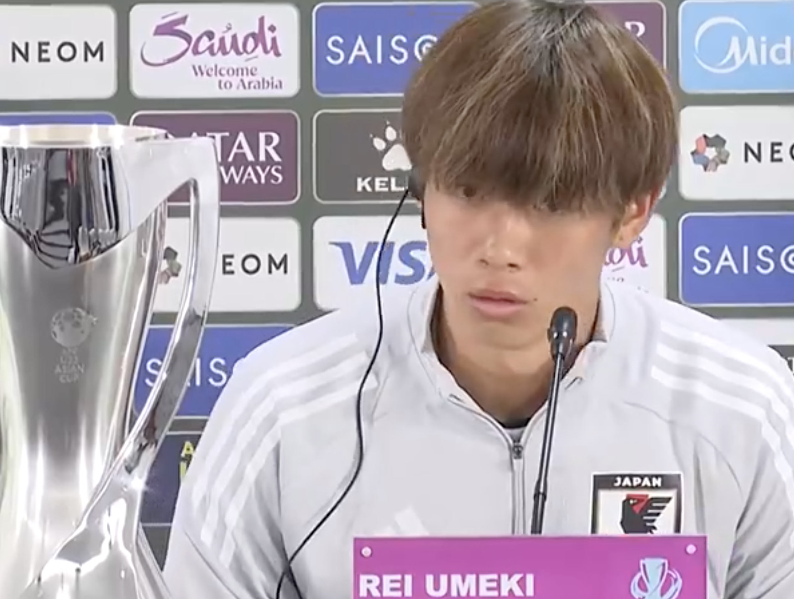 在愣了长达近13秒后,梅木怜将嘴巴靠近话筒处,准备回答,但依然不知道说什么。这时候,一旁的教练大岩刚赶紧替梅木怜解围。大岩刚低声对梅木怜说道:“面对中国队,保持尊重,坚持我们的踢法。”